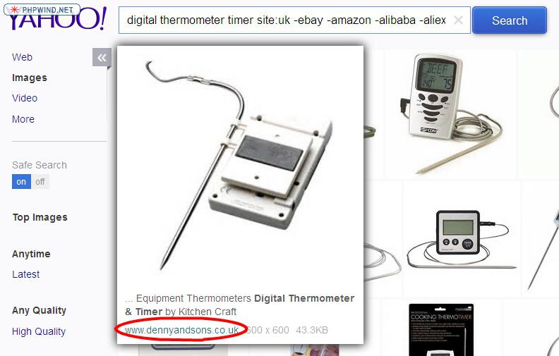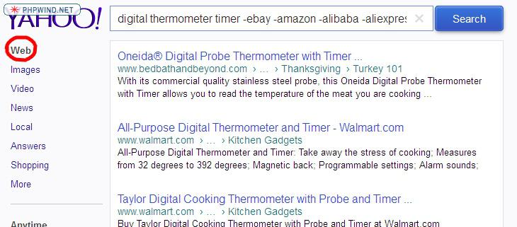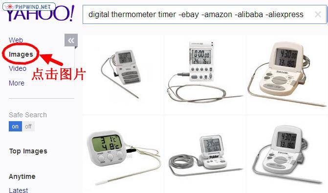 首先進入雅虎首頁:https://www.yahoo.com/ 。 在輸入框中輸入關鍵詞以及你不想要的B2B網(wǎng)站:digital thermometer timer -ebay -amazon -alibaba -aliexpress -cn ,然后點擊search。 注:這里的關鍵詞和 - (橫杠)之間要有空格哦。 如下圖,